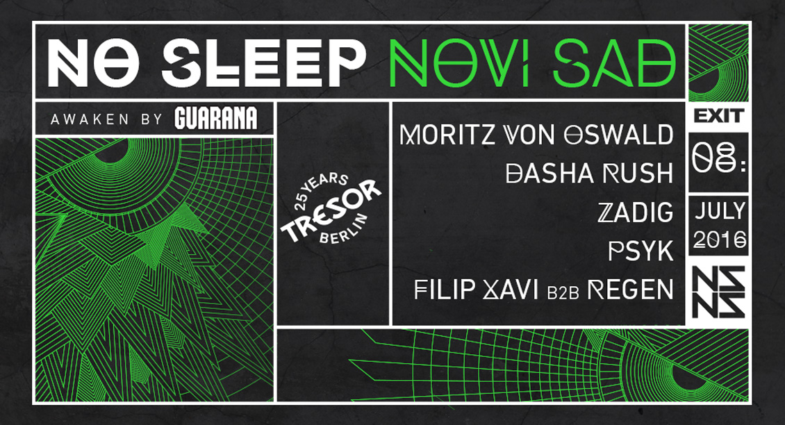 No Sleep Novi Sad je jedna od vodećih i najpopularnijih bina na EXIT Festivalu, te mesto na kome se sluša pravi Electro, a na kome puštaju neki od najistaknutijih svetskih DJ-eva u elektronskoj muzici, dok je program uvek pažljivo biran i uklapan zbog kompatiblinosti i senzibiliteta izvođačkih stilova, što je u ovoj vrsti muzike od izuzetne važnosti.